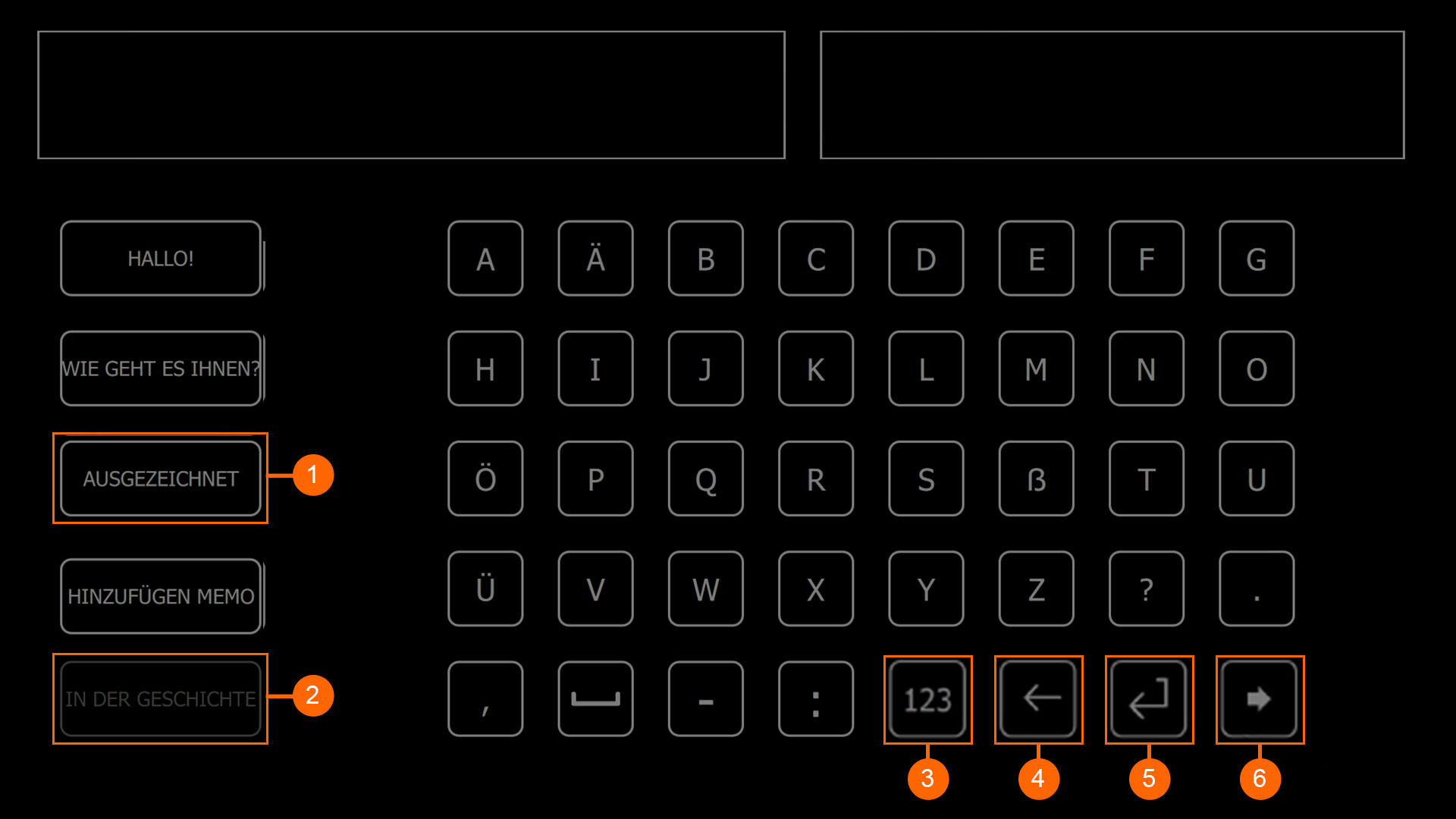 Die Intelligente Textvervollständigung ermöglicht eine schnellere Texteingabe. Um ein Wort zu tippen, sollten Sie ein paar der ersten Buchstaben eingeben, danach erscheinen auf der linken Bildschirmseite fertige Wörter, die mit diesen Buchstaben beginnen. Danach kann man das passende Wort auswählen.
