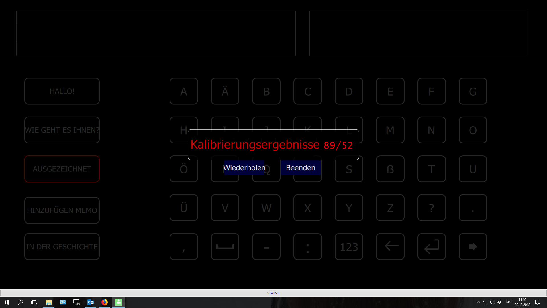 Wenn nur eine der Zahlen unter 80/30 liegt, wird empfohlen, die Kalibrierung erneut zu wiederholen (wahrscheinlich war diese erfolglos).